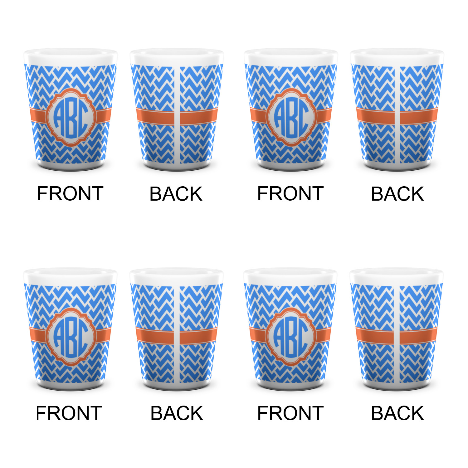 Made from ceramic these shot glasses are printed in full color with the design of your choice. These are a standard 1.5oz size and stand 2.25" tall. Available in a full white ceramic or a two-tone with a black color inside the shot glass. Buy a single or a set of 4, all of which can be designed separately to get you just what you want and need.