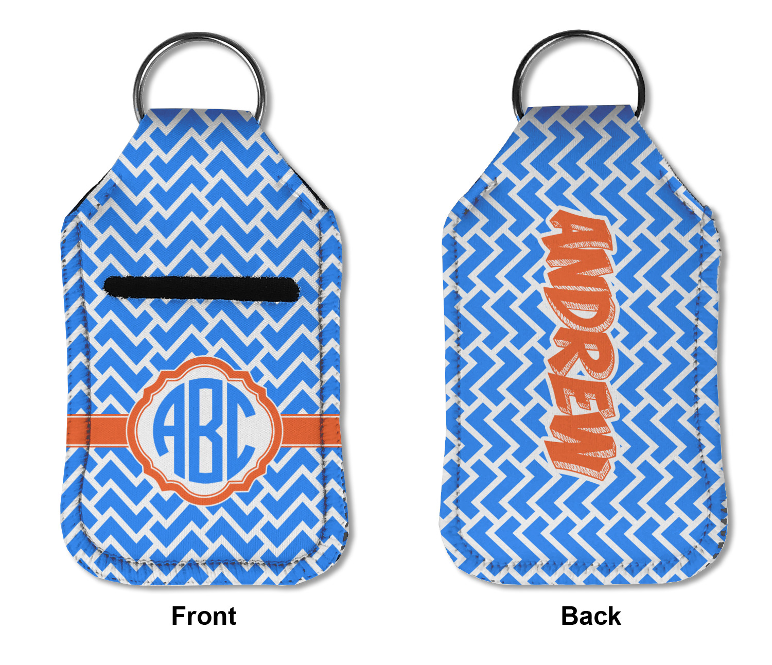 Each hand sanitizer holder comes with its own empty travel-sized, refillable hand sanitizer sure to fit snug in your customized sanitizer case! Our hand sanitizer cases are a durable, yet soft neoprene material sure to last any daily activities or travel agenda. Customize and personalize a hand sanitizer bottle holder with one of our two sizes - small (4.25" x 2.25") or large (5.5" x 2.5"). Each travel sanitizer holder comes with a keyring for attachment on bags, keys, or more!