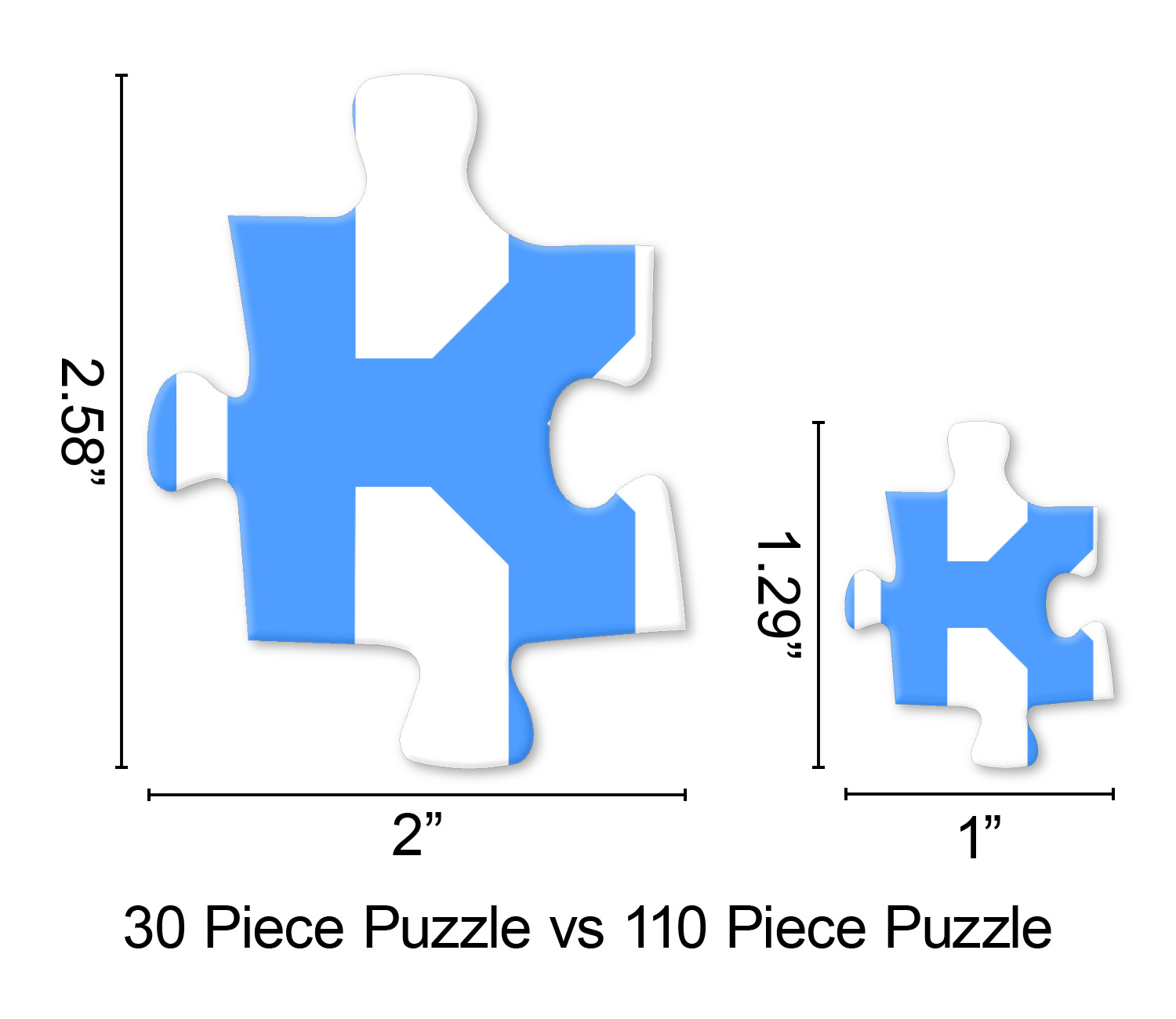 Our Jigsaw puzzles are perfect for children, teens and adults alike. We offer 5 different sizes of puzzles: