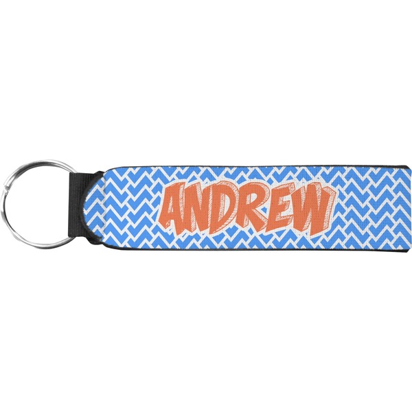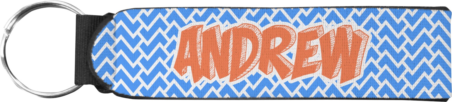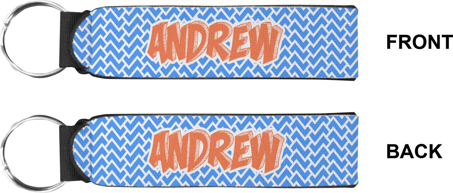 Made from neoprene, these key fob wristlets are comfortable, cushioned, easy to slip on and off; these traits allow it to maintain a slim, yet fashionable appearance, all while optimizing your efficiency. When attaching or removing keys, simply squeeze open the included metal ring. These fobs measure at around 4 inches, and have a bit of a stretch. Thus, they are best suited for small to medium size wrists. If you require a larger size, check out our webbing keychain fob for larger sizing.