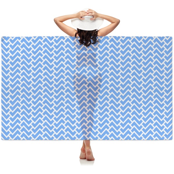 This geometric print is a fun play on the traditional chevron. It's an aqua blue zigzag pattern, contrasted sharply with a white outline.