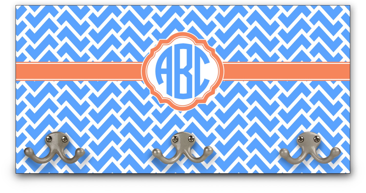 This coat rack is the perfect way to add some personality to your wall or entryway. The board is made of a strong maple that is approximately 16" x 8". The three 2-prong hooks are a sturdy metal that have three screws attaching them to the board. Your design is printed right onto the front of the board while the back and sides are a simple black.