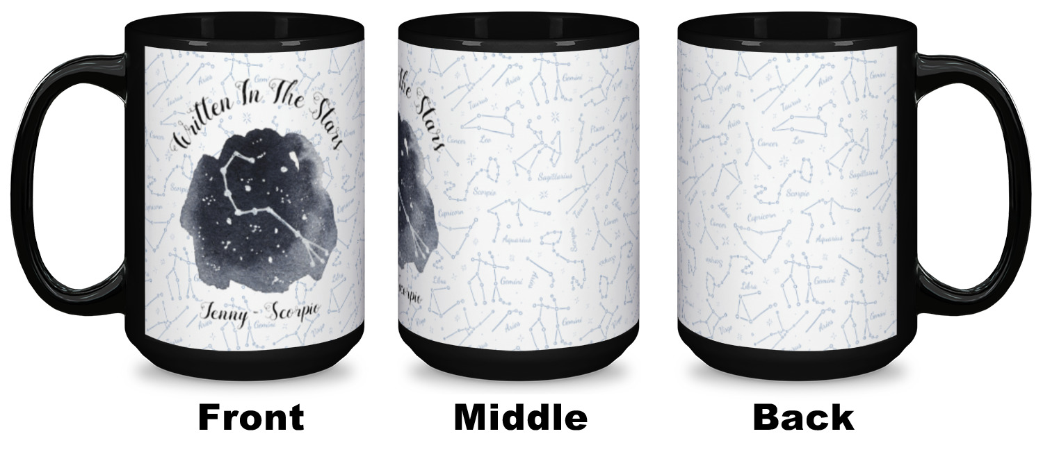 Our ceramic mugs have your design or photo printed along the surface with a gloss finish. The ceramic material of our mugs is dishwasher and microwave safe so you can reheat your tea or coffee if needed! We offer two different base colors with multiple mug sizes. The white ceramic mugs come in three size options - 11 oz., 15 oz., and 20 oz. Our black ceramic mugs are sold in either 11 oz. or 15 oz. sizes.