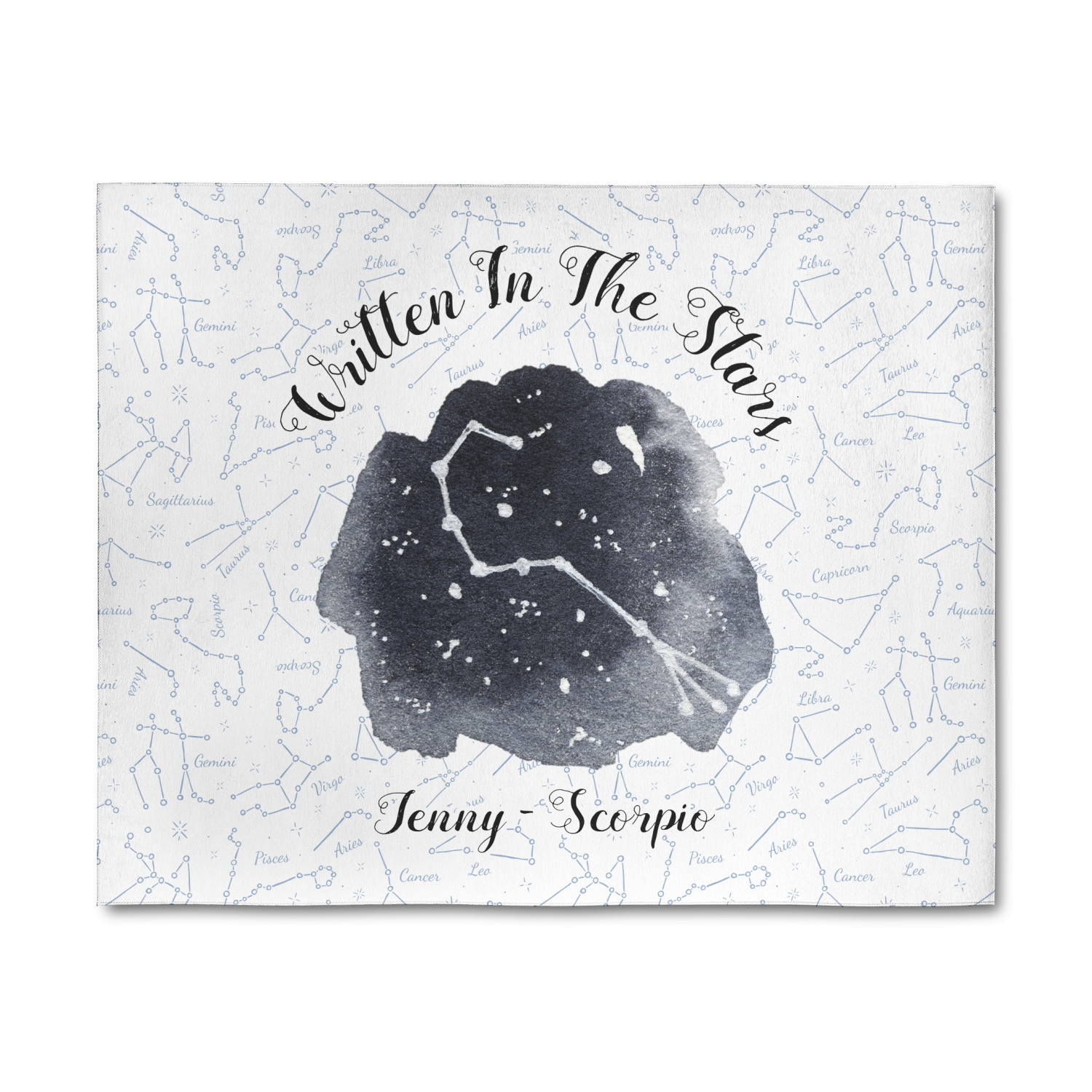 This design features a simplistic white and light blue background that has all of the zodiac constellations. The focal point of the design is your very own zodiac constellation surrounded by a sea of dark blue. It looks as if you are peeking into the night sky. Around this graphic is where you can put a phrase of your choosing and your personalization.