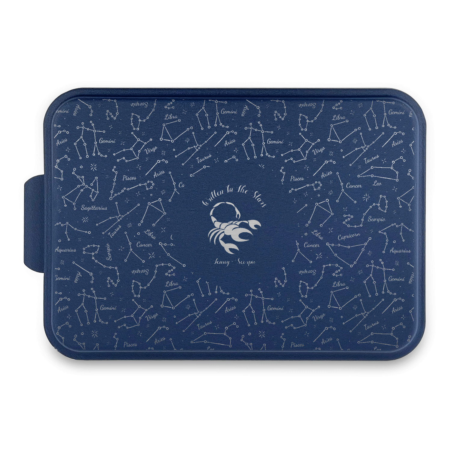 This design features a simplistic white and light blue background that has all of the zodiac constellations. The focal point of the design is your very own zodiac constellation surrounded by a sea of dark blue. It looks as if you are peeking into the night sky. Around this graphic is where you can put a phrase of your choosing and your personalization.