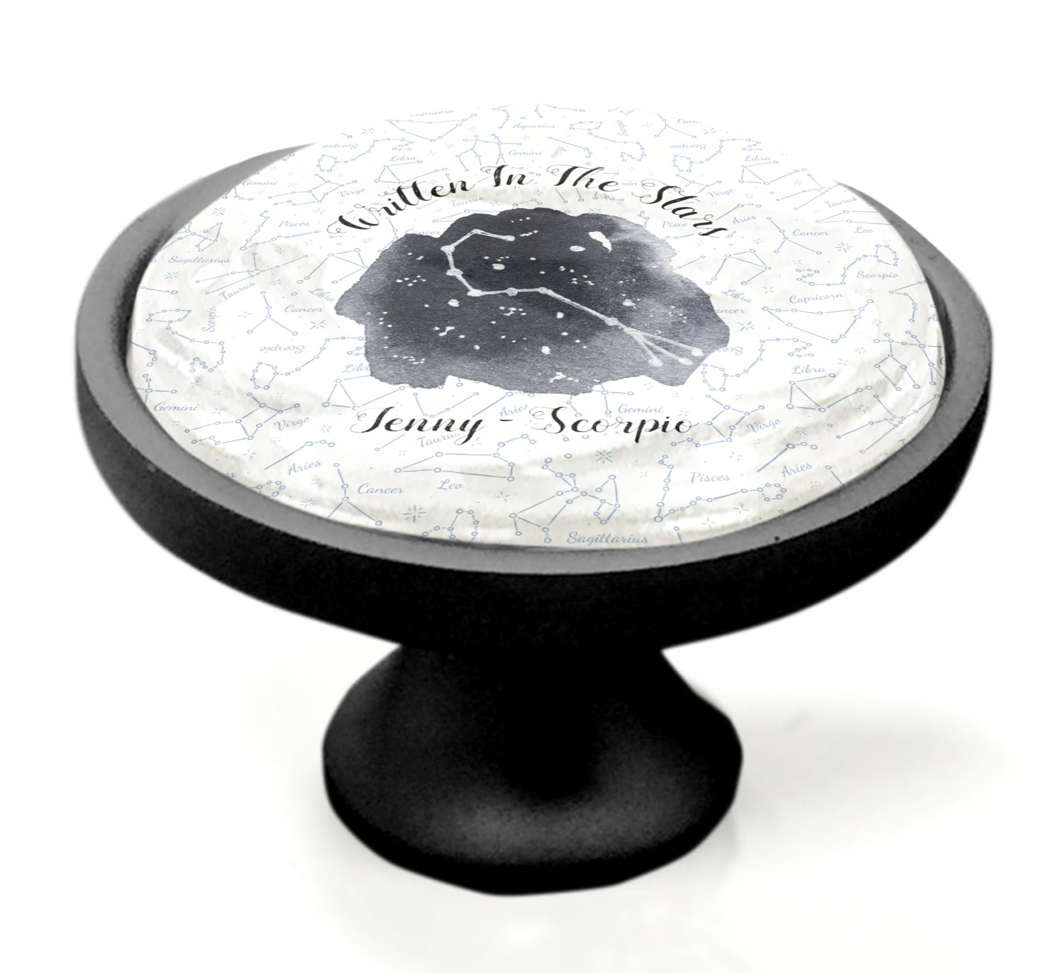 We sell these cabinet pulls in two different colors to better match your room's color scheme. We offer an oil-rubbed bronze base that is black in color, and a satin nickel option, which has a silver color. Your design is displayed across a high gloss vinyl insert that is placed on top of these cabinet handles. We then place a 1 inch thick glass cabochon atop the design, which seals the cabinet knob and makes the colors of your customization stand out. These custom cabinet knobs are approximately 1.3 inches in diameter. Your purchase includes a 1 inch screw that can be used to mount the knob to any cabinet in your home.