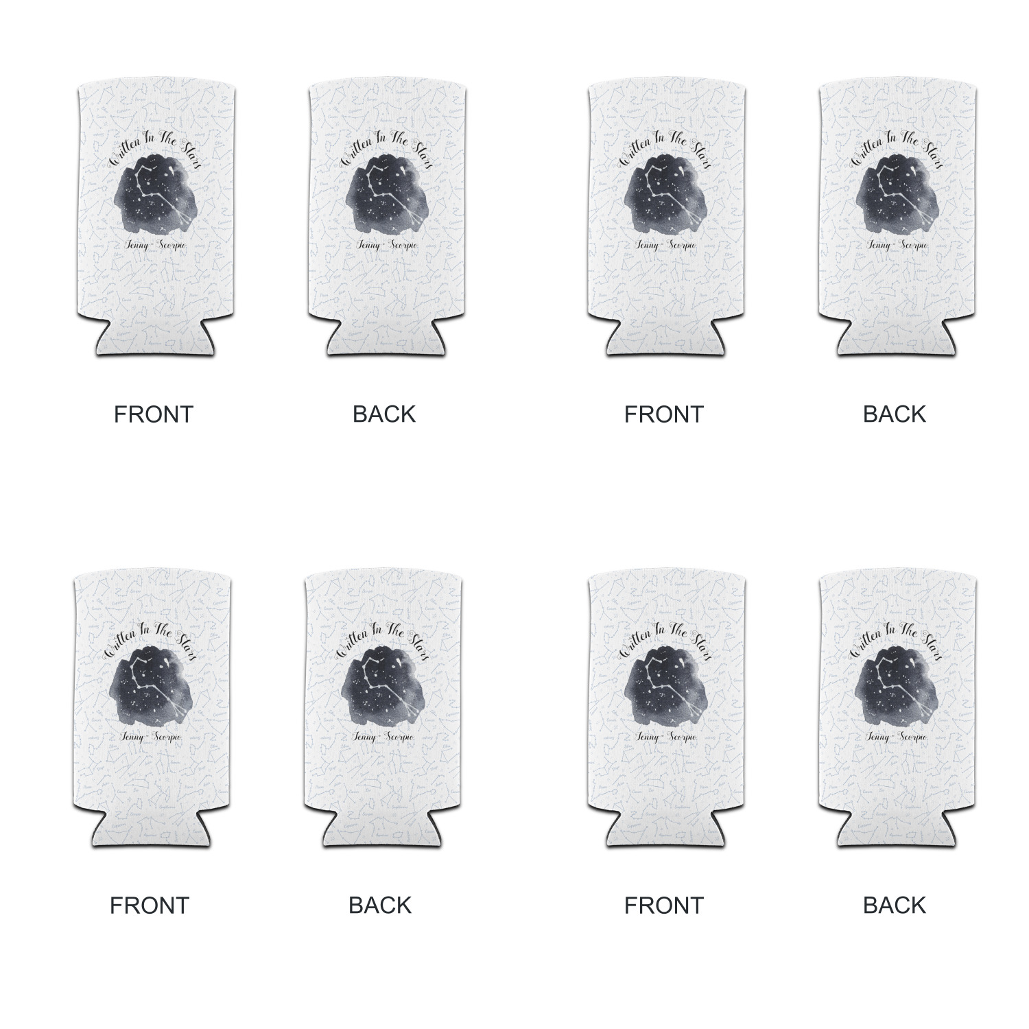 This design features a simplistic white and light blue background that has all of the zodiac constellations. The focal point of the design is your very own zodiac constellation surrounded by a sea of dark blue. It looks as if you are peeking into the night sky. Around this graphic is where you can put a phrase of your choosing and your personalization.