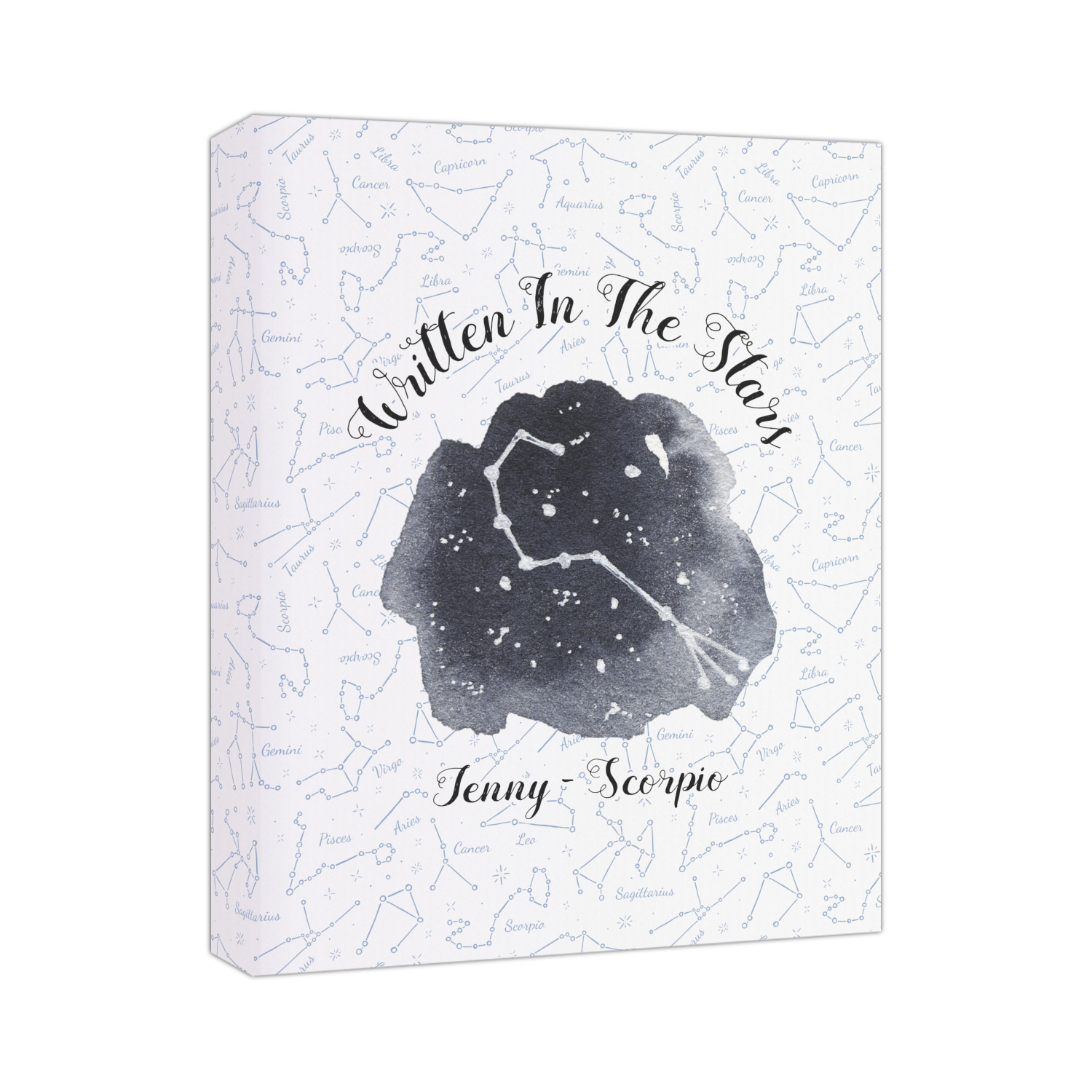 This design features a simplistic white and light blue background that has all of the zodiac constellations. The focal point of the design is your very own zodiac constellation surrounded by a sea of dark blue. It looks as if you are peeking into the night sky. Around this graphic is where you can put a phrase of your choosing and your personalization.