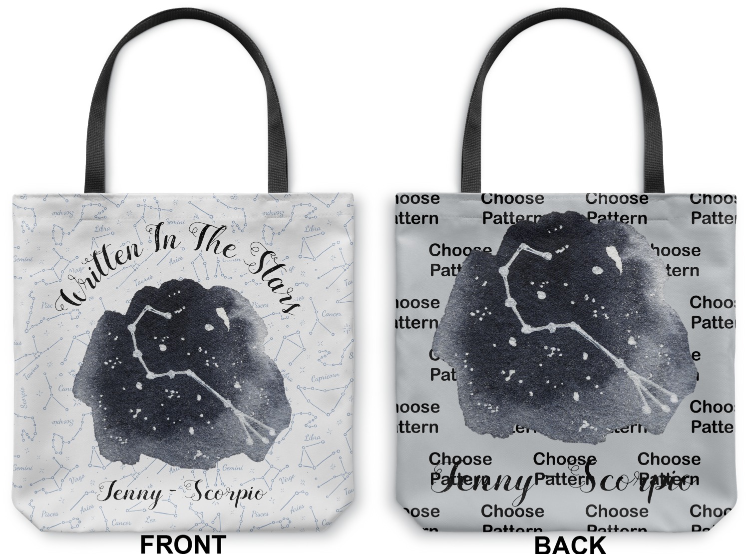 Our totes are made right here in the USA. Your design is printed on canvas fabric; the fabric is then cut and sewn on the sides and on the bottom to add an approximately 3.5 inch gusset. Black cotton handles are sewn in and reinforced. Your tote has a designs on both sides - the designs can be the same or different - the choice is yours. The inside of the tote has a black fused lining.