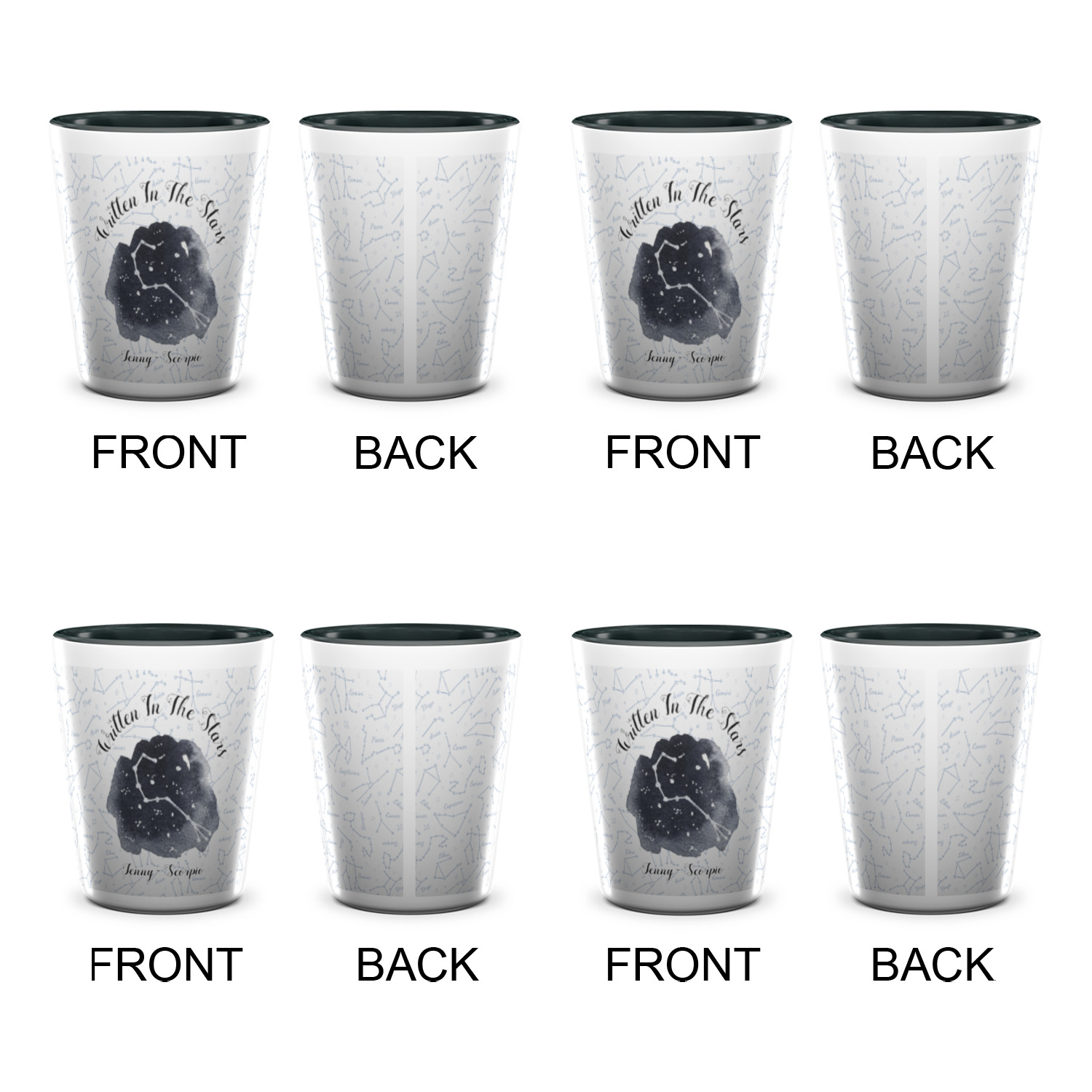 Made from ceramic these shot glasses are printed in full color with the design of your choice. These are a standard 1.5oz size and stand 2.25" tall. Available in a full white ceramic or a two-tone with a black color inside the shot glass. Buy a single or a set of 4, all of which can be designed separately to get you just what you want and need.