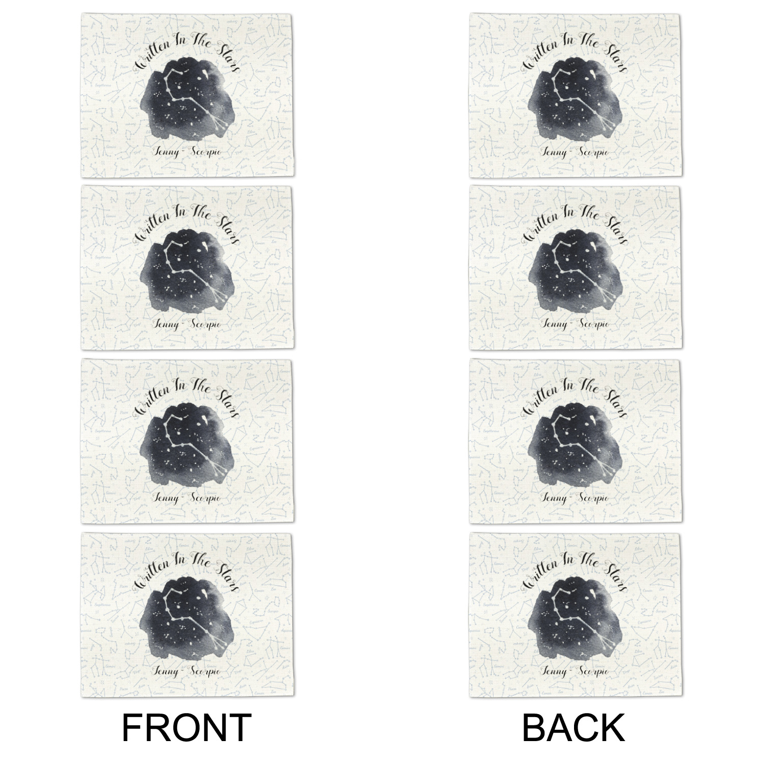This design features a simplistic white and light blue background that has all of the zodiac constellations. The focal point of the design is your very own zodiac constellation surrounded by a sea of dark blue. It looks as if you are peeking into the night sky. Around this graphic is where you can put a phrase of your choosing and your personalization.