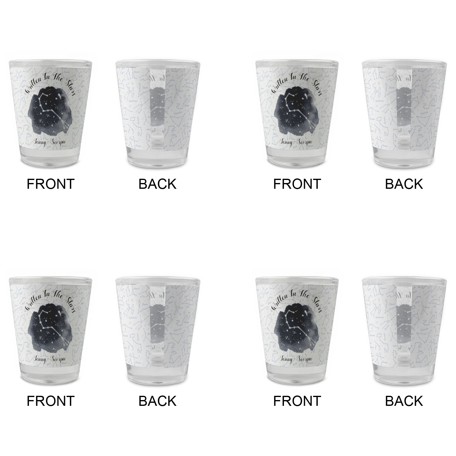 Made with frosted glass, these shot glasses are printed in full color with the design of your choice. They are a standard 1.5oz shot glass and are 2.4" tall. The print is wrapped around the shot glass in a full wrap and boldly displays your customization.