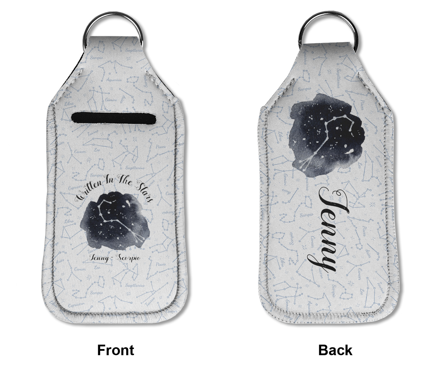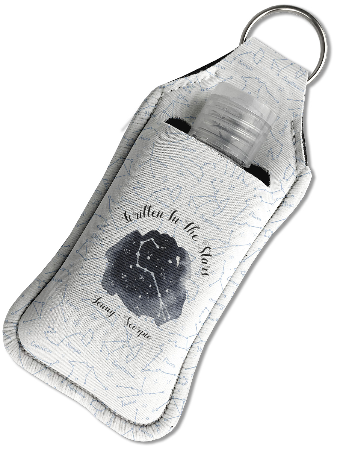Each hand sanitizer holder comes with its own empty travel-sized, refillable hand sanitizer sure to fit snug in your customized sanitizer case! Our hand sanitizer cases are a durable, yet soft neoprene material sure to last any daily activities or travel agenda. Customize and personalize a hand sanitizer bottle holder with one of our two sizes - small (4.25" x 2.25") or large (5.5" x 2.5"). Each travel sanitizer holder comes with a keyring for attachment on bags, keys, or more!
