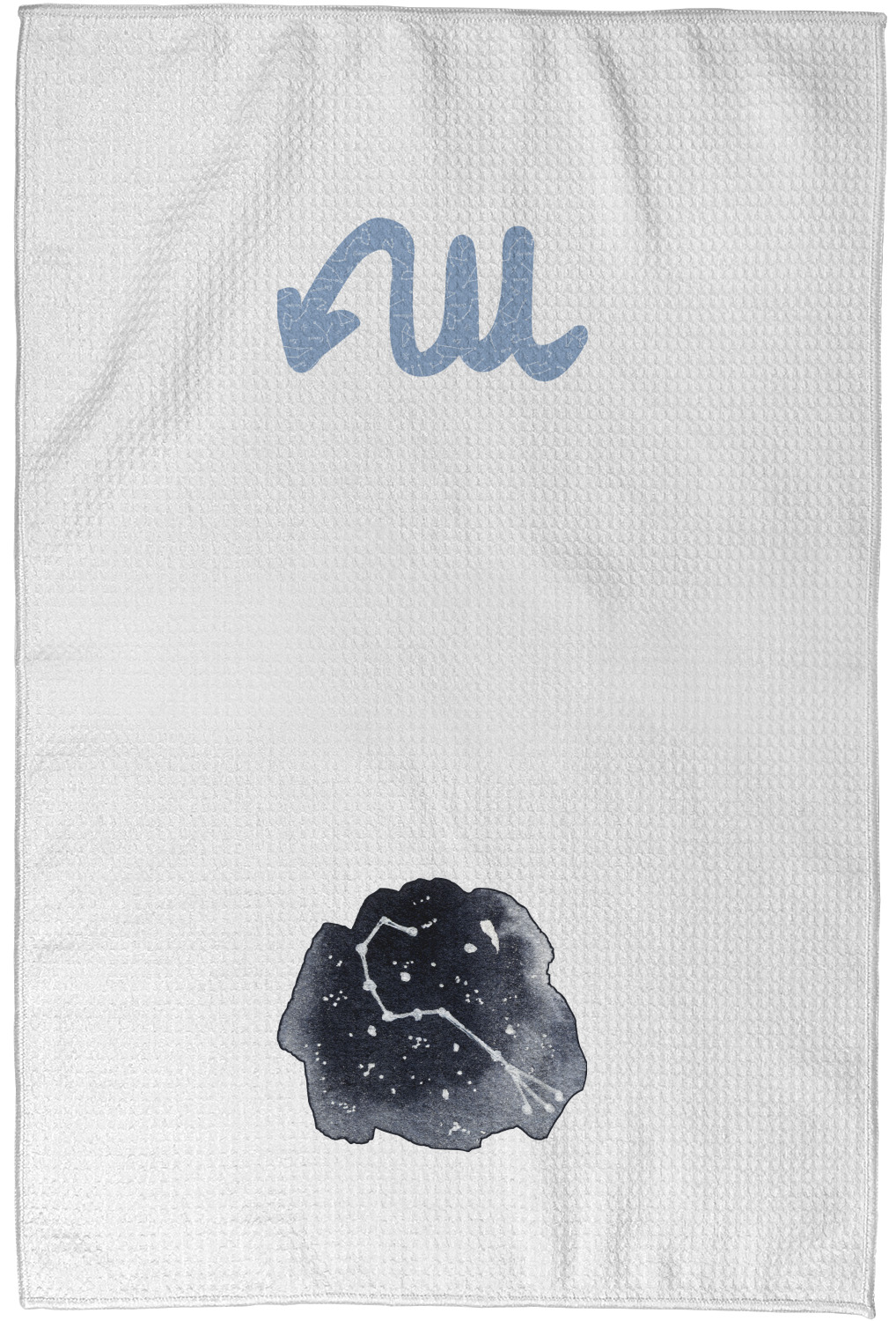 This design features a simplistic white and light blue background that has all of the zodiac constellations. The focal point of the design is your very own zodiac constellation surrounded by a sea of dark blue. It looks as if you are peeking into the night sky. Around this graphic is where you can put a phrase of your choosing and your personalization.