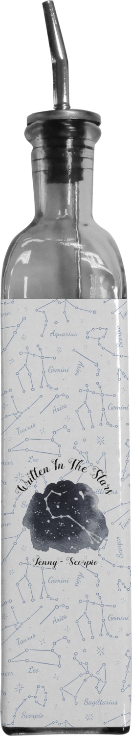 Made from recycled glass in Spain, these oil bottles have a classic, delicate look, and are accompanied by a metal spout for controlled pouring. Each bottle holds approximately 13 ounces and measures at 12 by 2 inches. We customize your glass oil bottle by applying your personalized design on the front and sides, using an adhesive. Our customizable stickers are made from high quality, gloss vinyl and are printed with waterproof, eco-solvent inks. These pieces are machine cut for accuracy and symmetry. The result is a robust, waterproof, adhesive decal that will not fade or deteriorate with time.