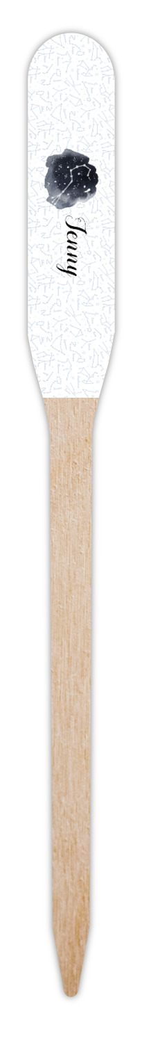 This design features a simplistic white and light blue background that has all of the zodiac constellations. The focal point of the design is your very own zodiac constellation surrounded by a sea of dark blue. It looks as if you are peeking into the night sky. Around this graphic is where you can put a phrase of your choosing and your personalization.