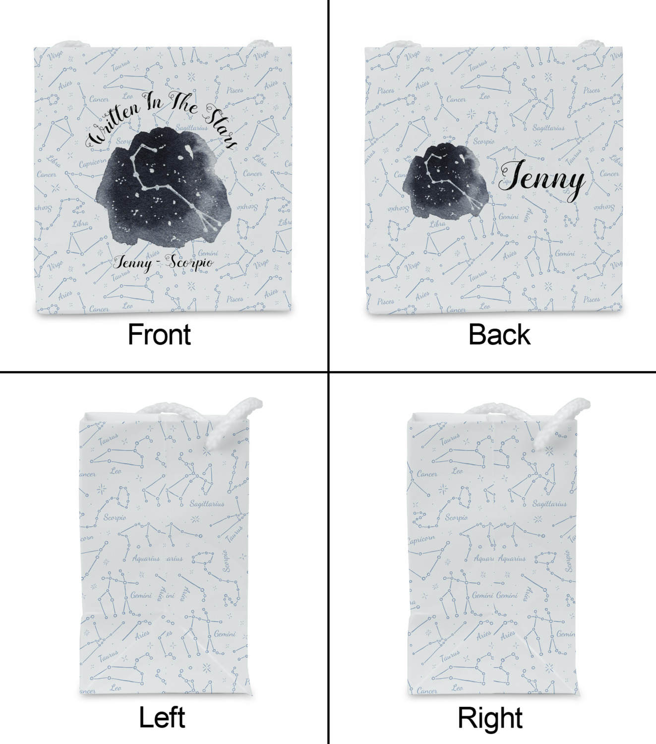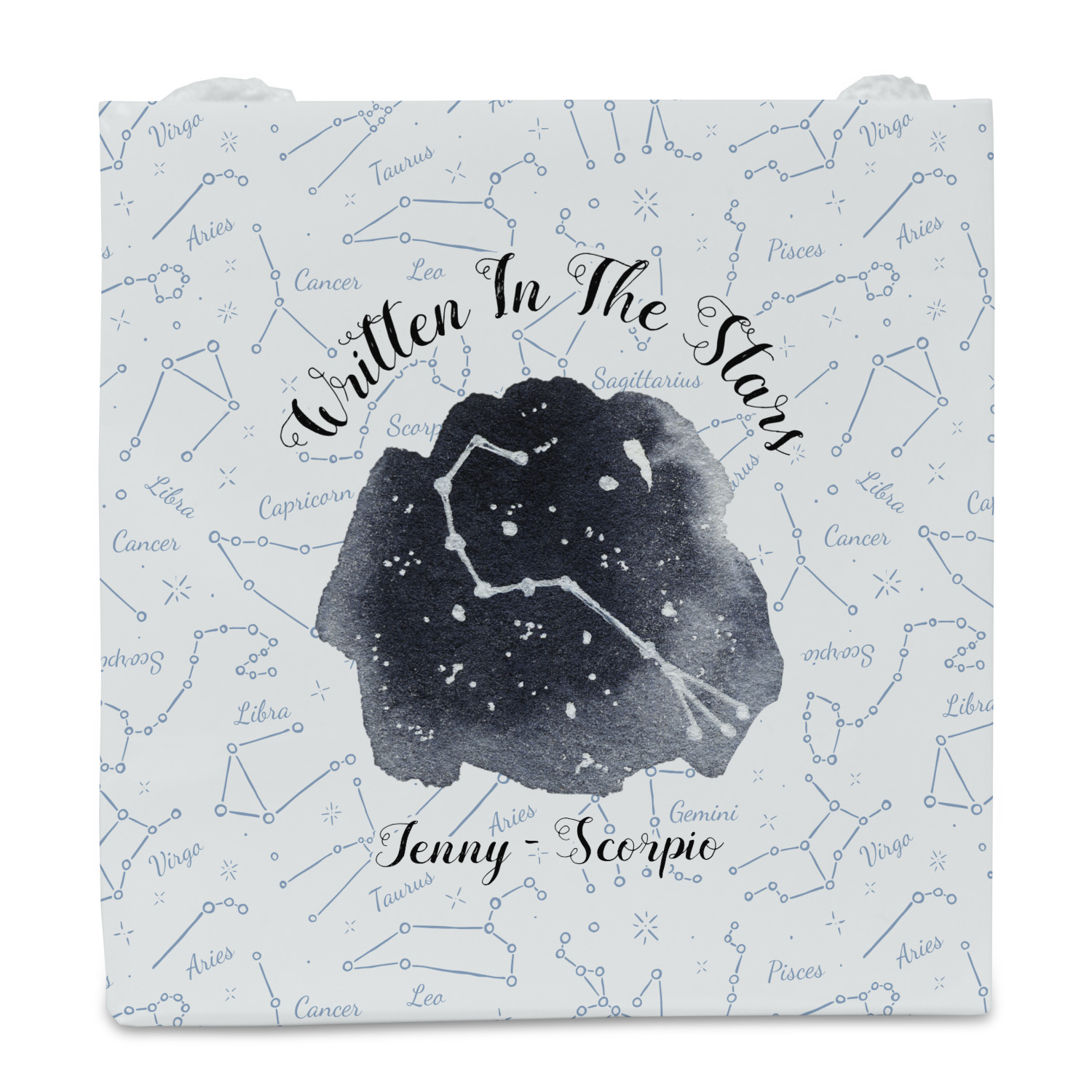 This design features a simplistic white and light blue background that has all of the zodiac constellations. The focal point of the design is your very own zodiac constellation surrounded by a sea of dark blue. It looks as if you are peeking into the night sky. Around this graphic is where you can put a phrase of your choosing and your personalization.