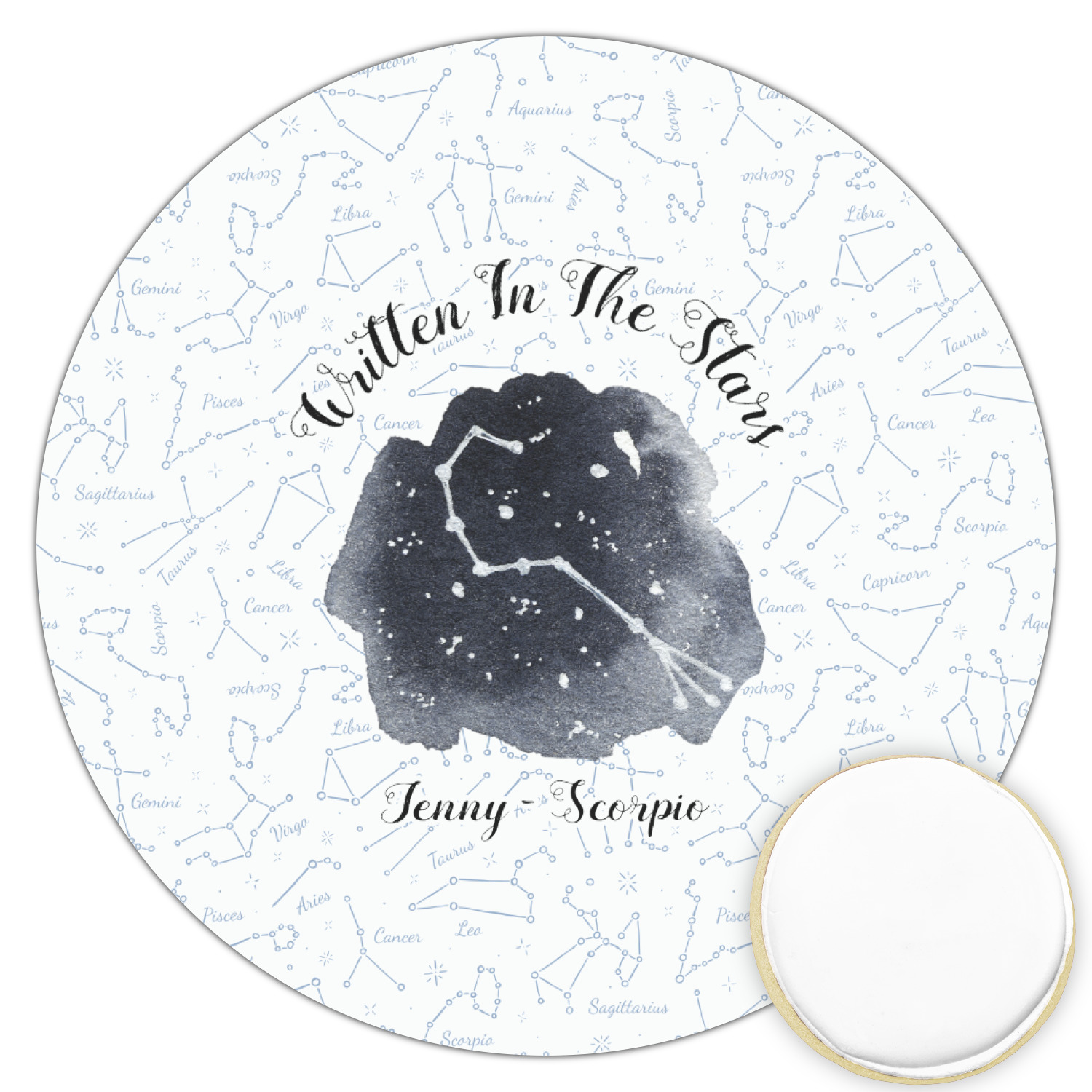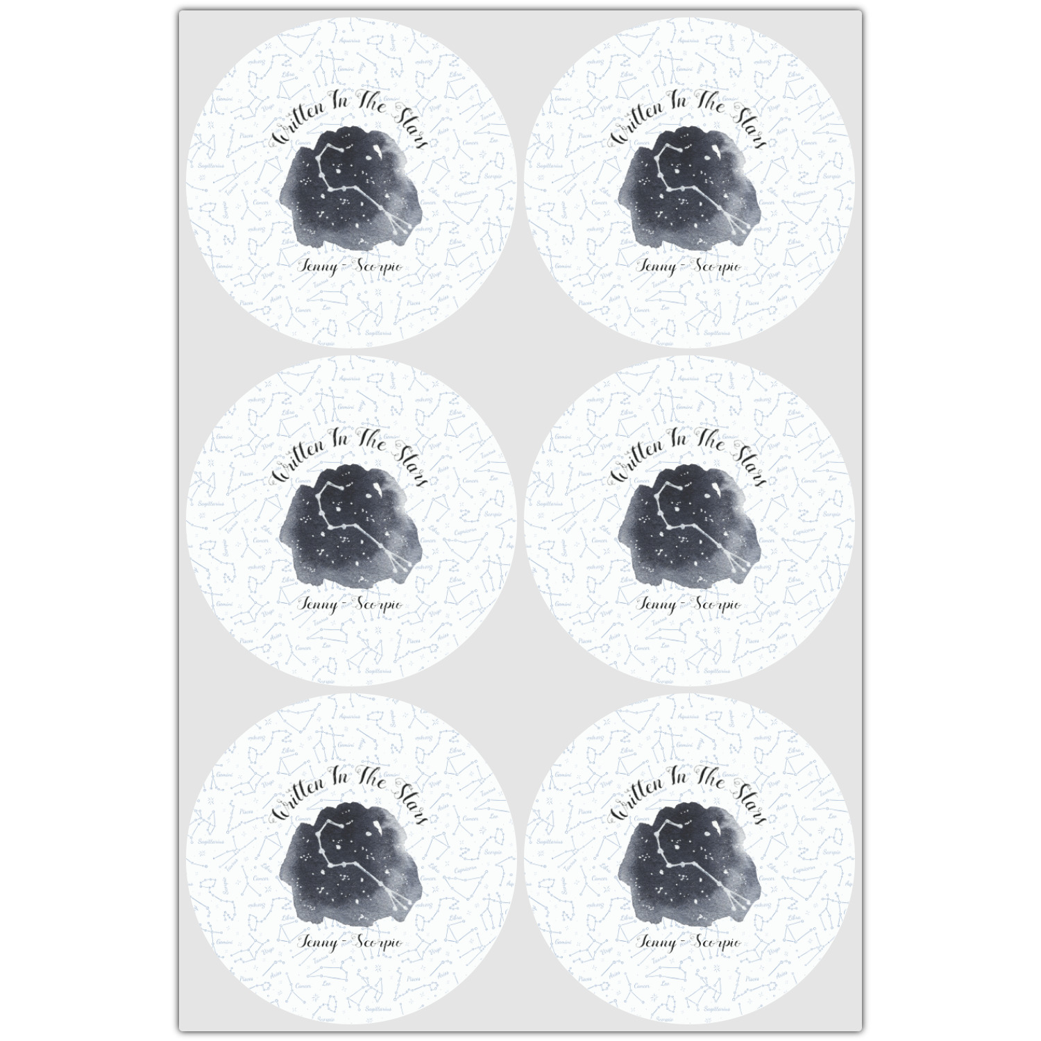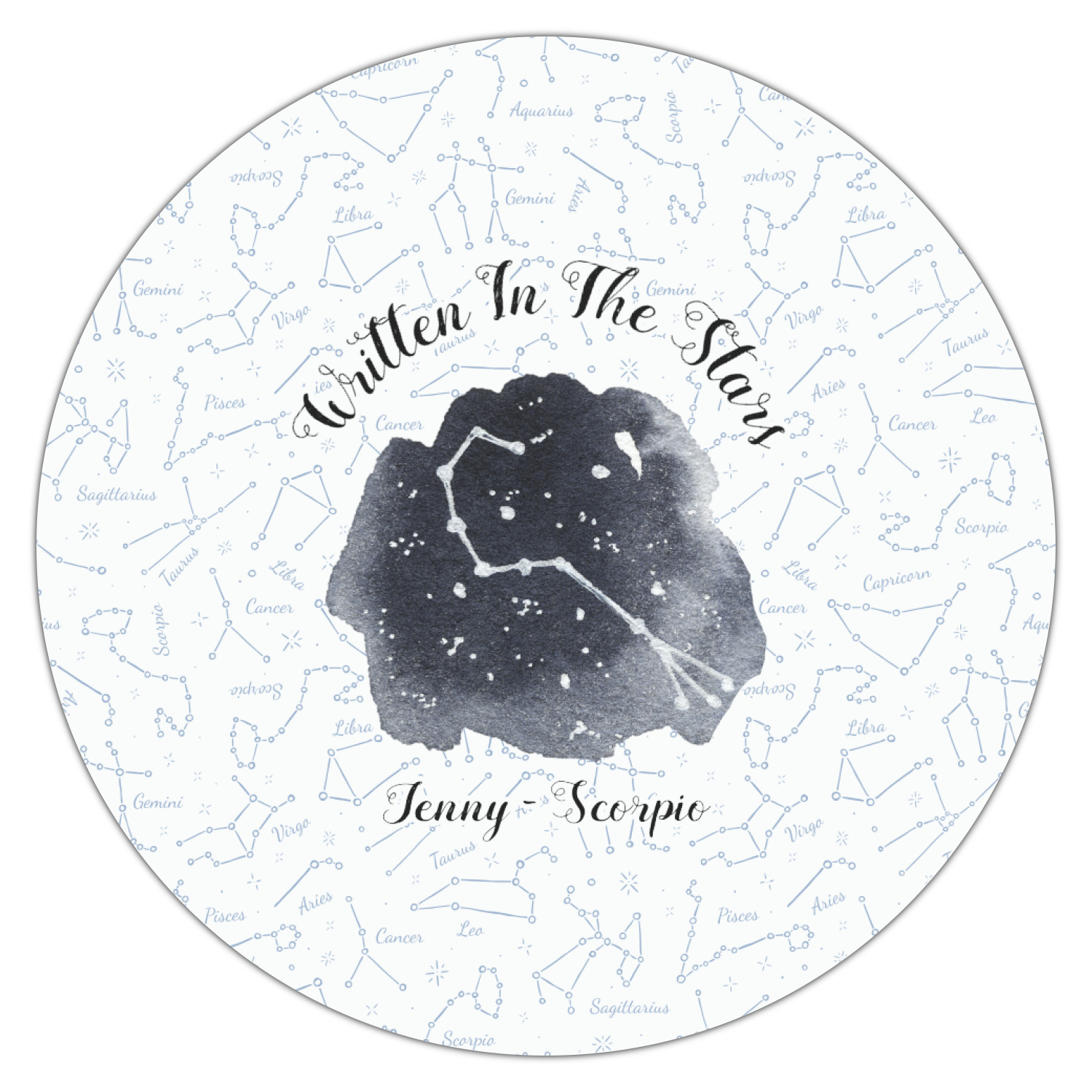 This design features a simplistic white and light blue background that has all of the zodiac constellations. The focal point of the design is your very own zodiac constellation surrounded by a sea of dark blue. It looks as if you are peeking into the night sky. Around this graphic is where you can put a phrase of your choosing and your personalization.