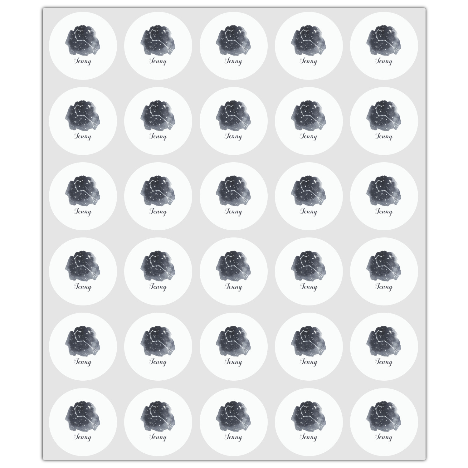 This design features a simplistic white and light blue background that has all of the zodiac constellations. The focal point of the design is your very own zodiac constellation surrounded by a sea of dark blue. It looks as if you are peeking into the night sky. Around this graphic is where you can put a phrase of your choosing and your personalization.