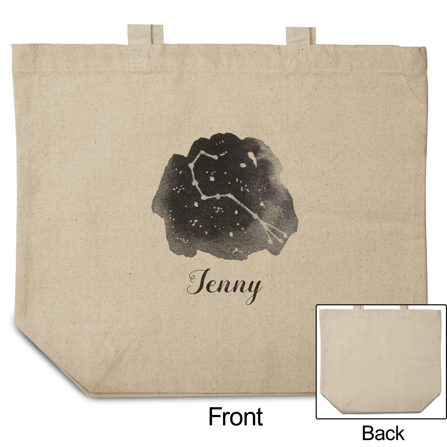 These cotton totes are washable and easy to care for, and they can be folded flat for storage. Your artwork, logo, or photo is printed in full color directly on the cotton tote in the front.