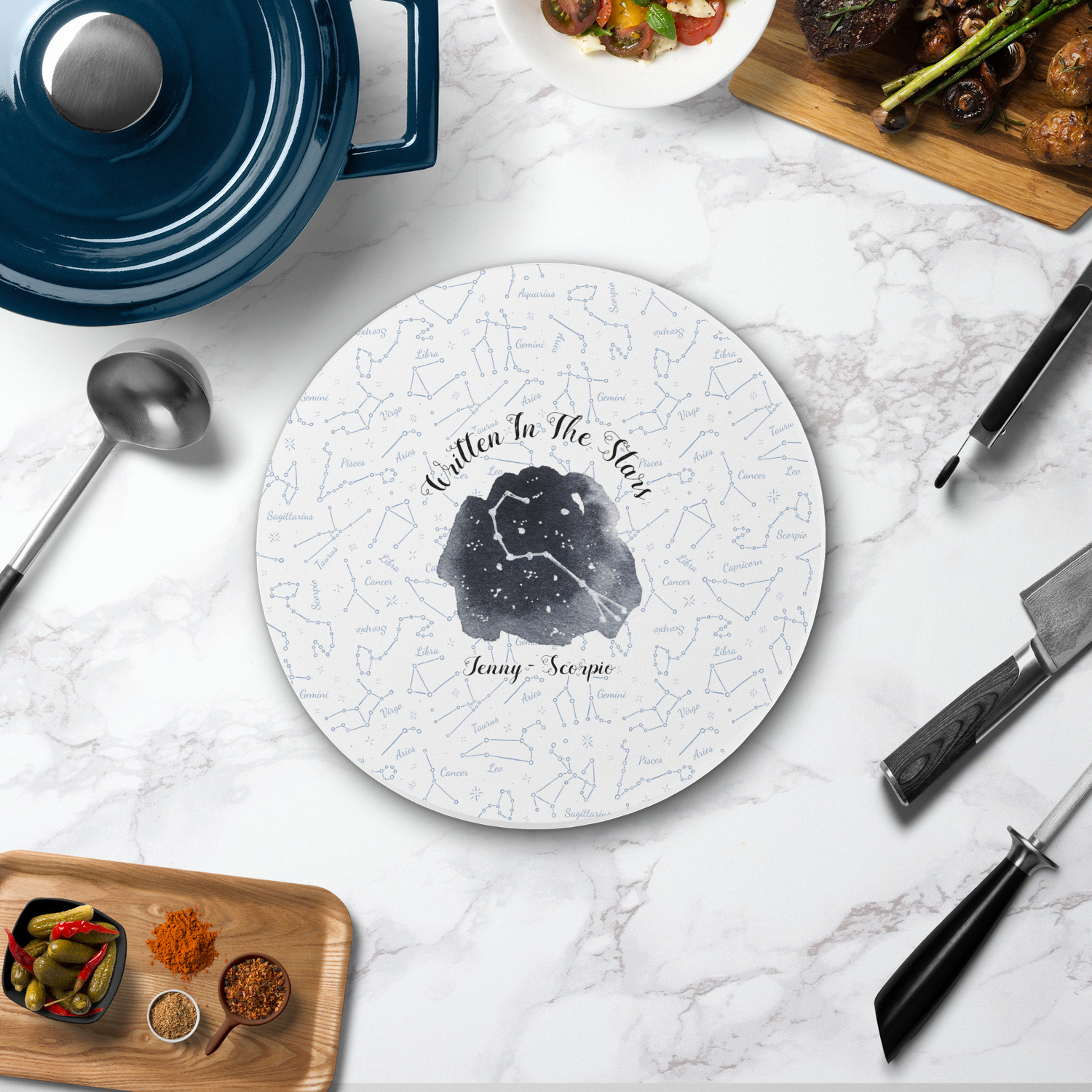 The round trivets can be customized with your own design, your own photo, or your own logo. You can add personalization, like a monogram, family name or initial to your uploaded design / art. You can also customize one of our designs and change the patterns, colors, personalization, fonts etc.