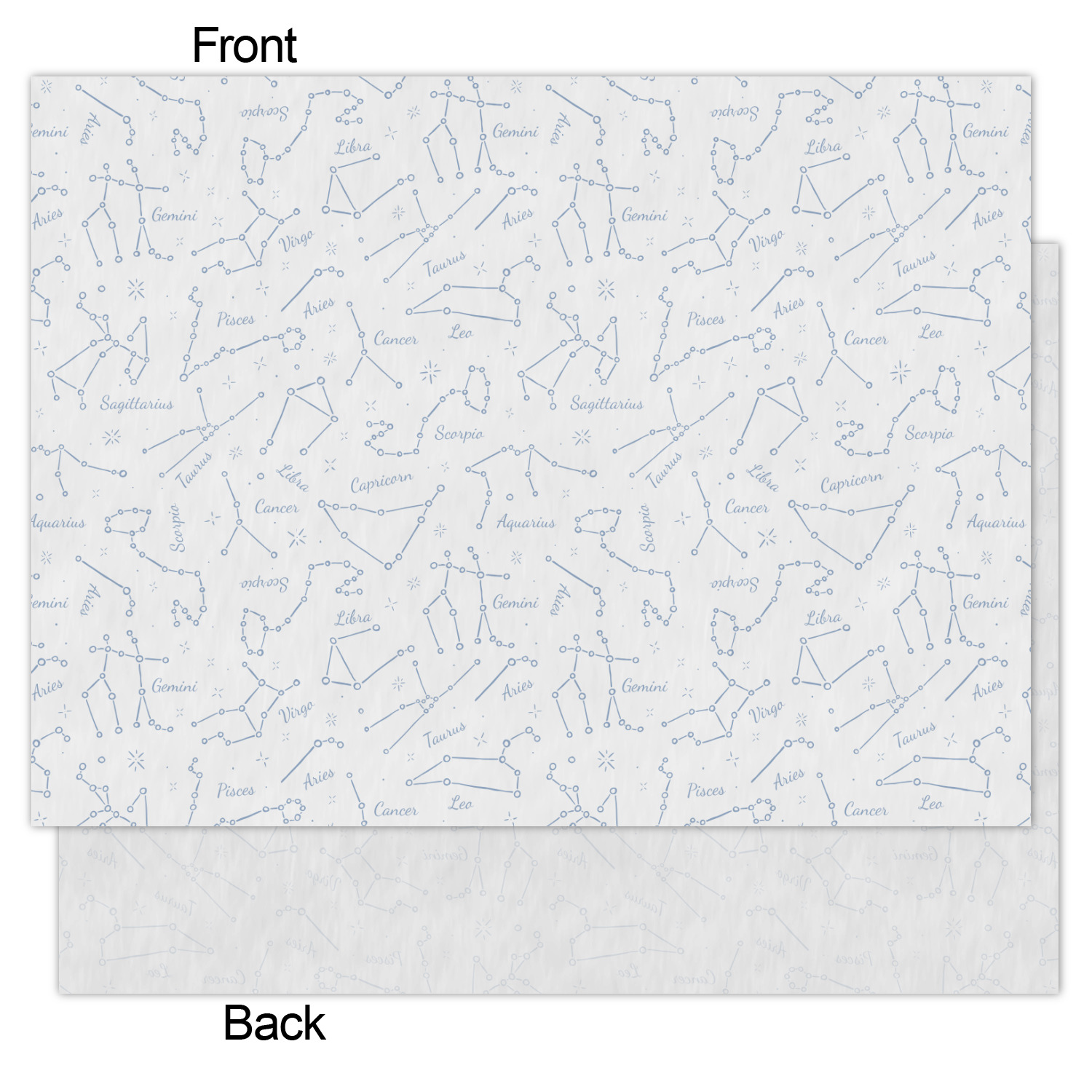 This design features a simplistic white and light blue background that has all of the zodiac constellations. The focal point of the design is your very own zodiac constellation surrounded by a sea of dark blue. It looks as if you are peeking into the night sky. Around this graphic is where you can put a phrase of your choosing and your personalization.