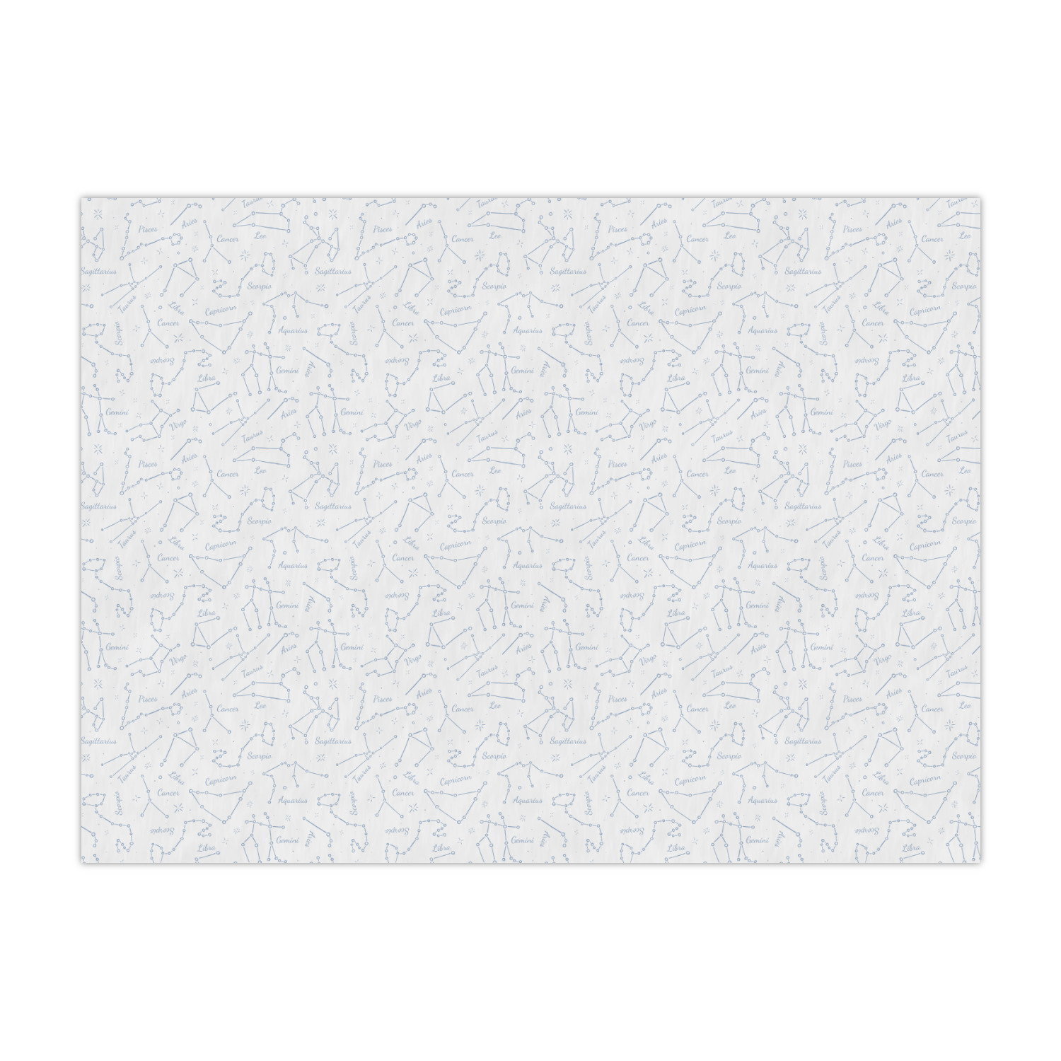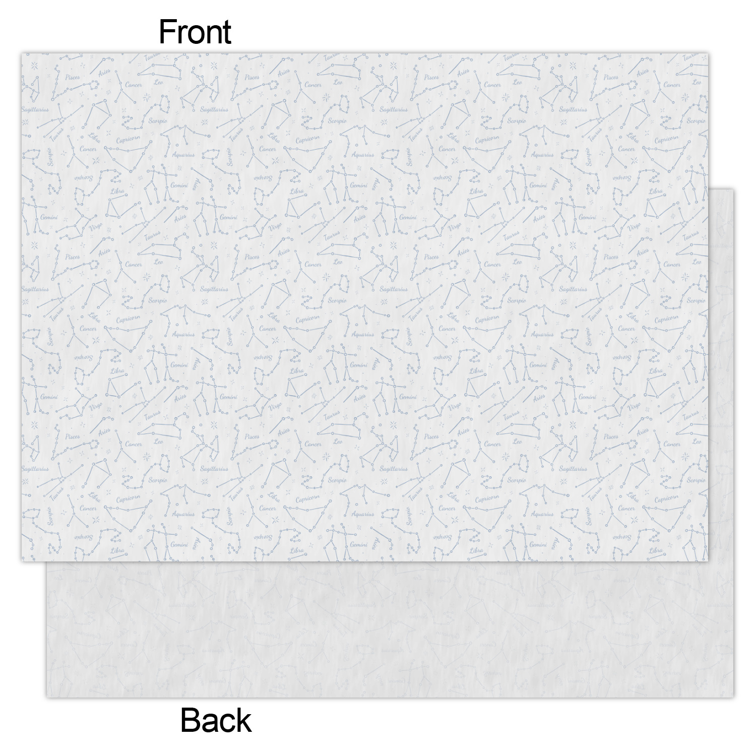 This design features a simplistic white and light blue background that has all of the zodiac constellations. The focal point of the design is your very own zodiac constellation surrounded by a sea of dark blue. It looks as if you are peeking into the night sky. Around this graphic is where you can put a phrase of your choosing and your personalization.
