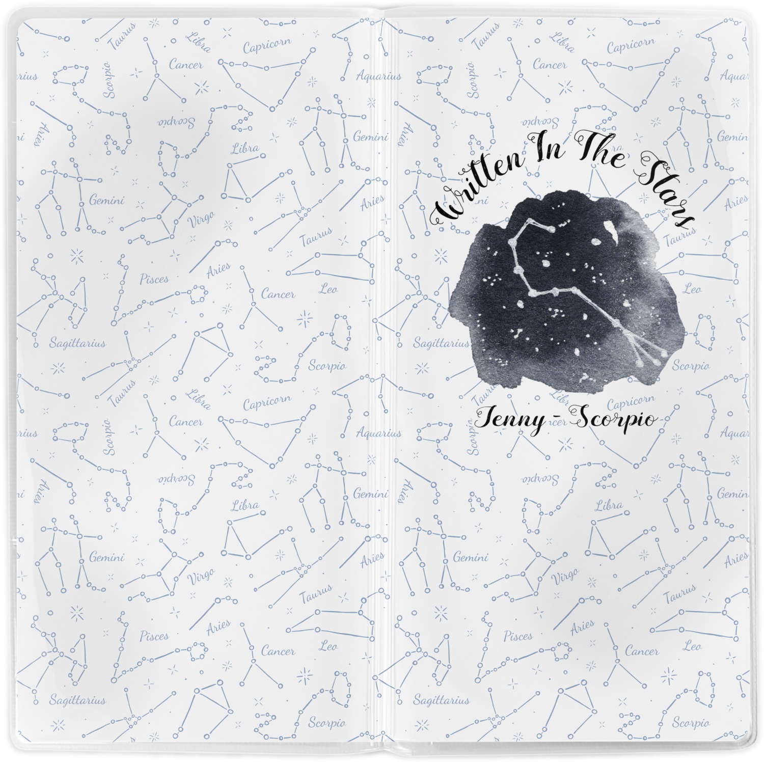 This design features a simplistic white and light blue background that has all of the zodiac constellations. The focal point of the design is your very own zodiac constellation surrounded by a sea of dark blue. It looks as if you are peeking into the night sky. Around this graphic is where you can put a phrase of your choosing and your personalization.