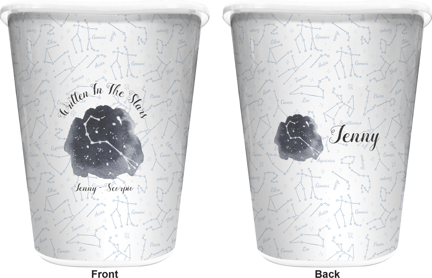 You can choose to purchase these decorative wastebaskets in either a white or a black color that will show on the base and the upper rim. Your customization is printed on a high-gloss, fine-quality vinyl adhesive, and you can choose to either have this adhesive applied to one side only or to both sides. As such, this plastic wastebasket can be single-sided or double-sided, depending on your creative vision. Your customization is printed using durable inks, making the design waterproof and resistant to fading over time.