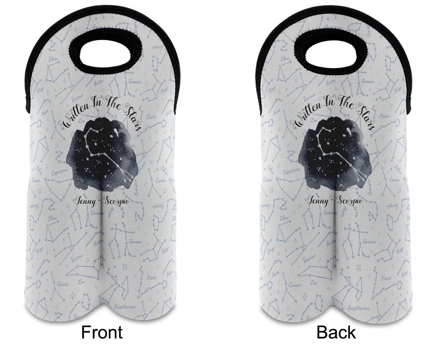 These tote bags are insulated to keep the bottles cold and have a stitched separation down the middle and double handles to keep the two bottles safe and secure during travels.
