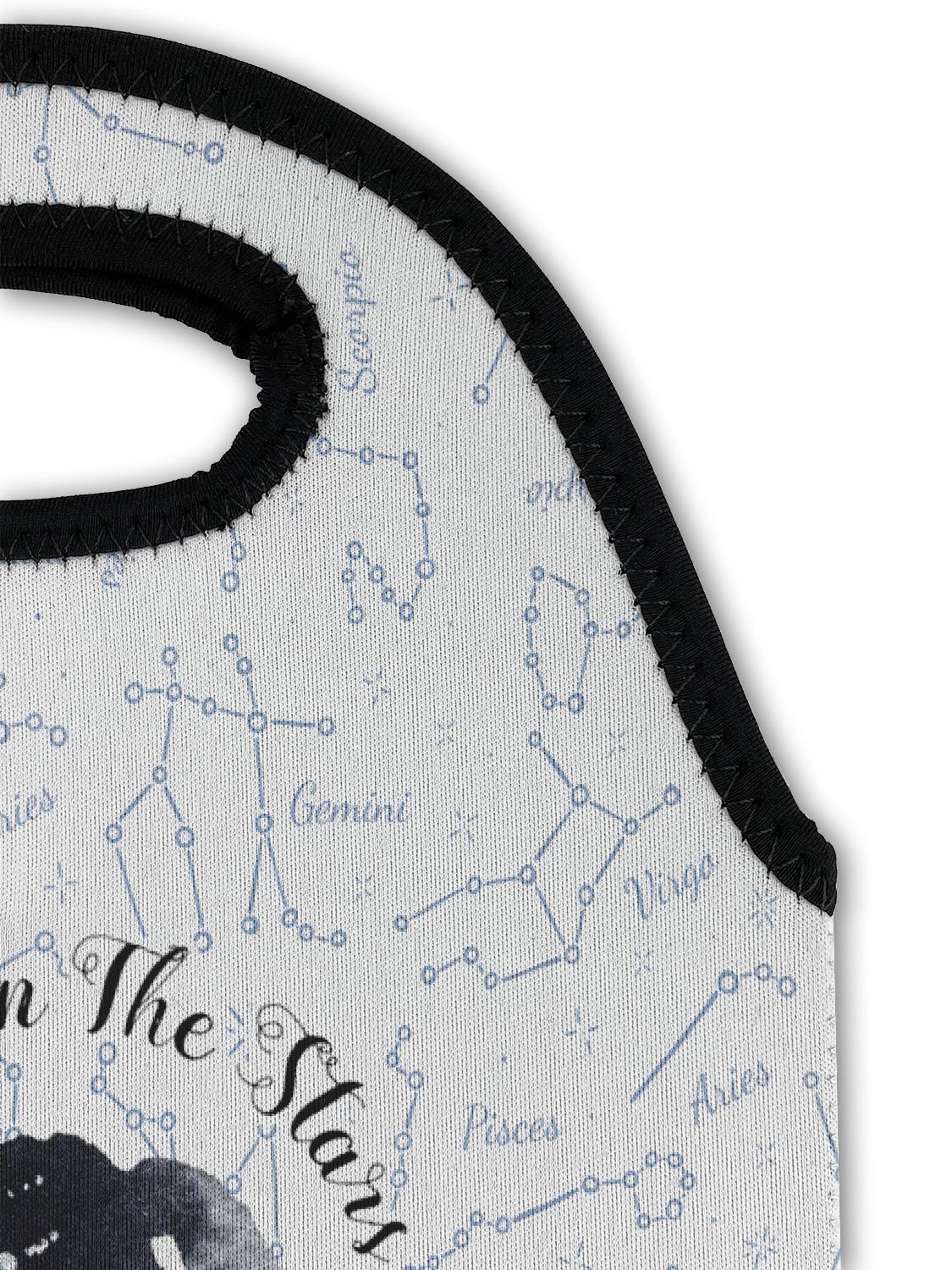 This design features a simplistic white and light blue background that has all of the zodiac constellations. The focal point of the design is your very own zodiac constellation surrounded by a sea of dark blue. It looks as if you are peeking into the night sky. Around this graphic is where you can put a phrase of your choosing and your personalization.