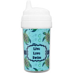 Well made cup, but the name is printed on paper which slides into the outer edge of the cup and the inner piece of the cup slides in next to that.